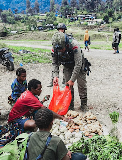 JELAJAHNEWS, Intan Jaya |- Satgas Ops Damai Cartenz-2025 menggelar patroli dialogis dengan menyapa mama-mama Papua penjual bahan pangan lokal di pasar Kabupaten Intan Jaya, Selasa (25/3/2025). Kegiatan ini bertujuan memastikan situasi keamanan dan ketertiban masyarakat (kamtibmas) tetap kondusif.